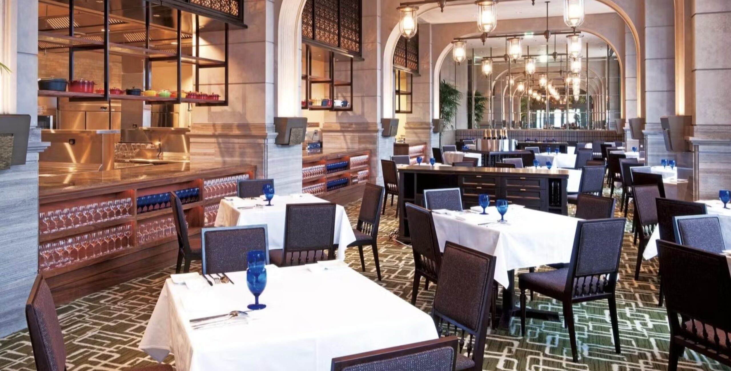 オリエンタルホテル17階「メインダイニング バイ ザ ハウス オブ パシフィック」で、楽しく食事しましょう!ビジネスのご相談ももちろん可能です。